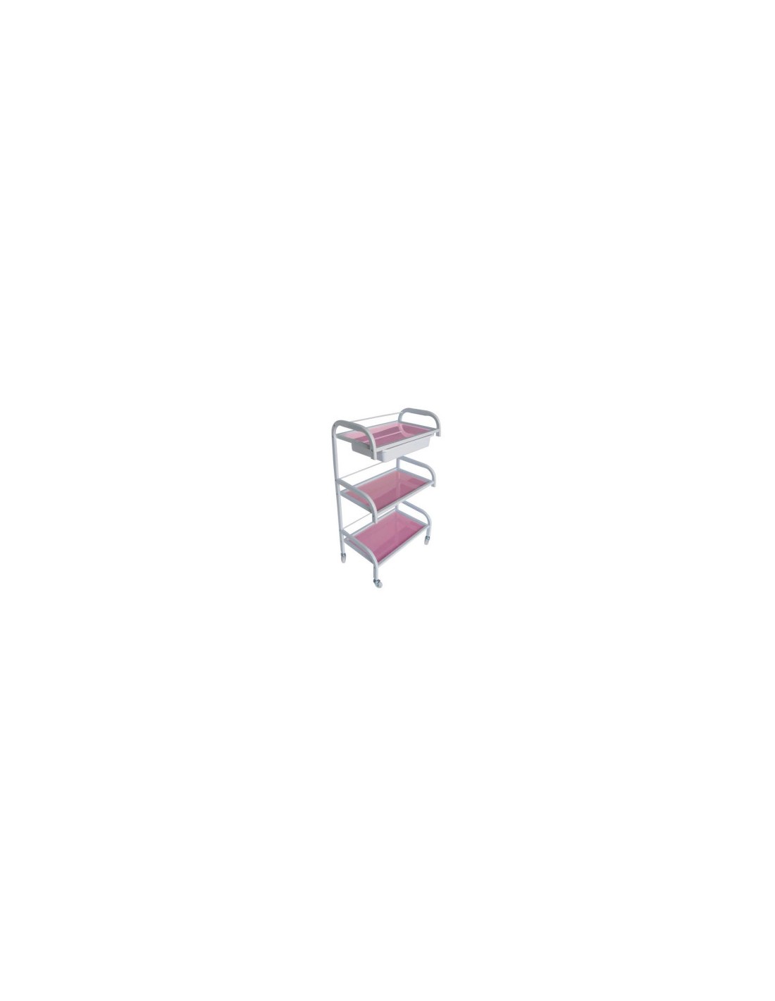 CARRO ESTÉTICA CRISTAL CON CAJON METÁLICO ROSA.