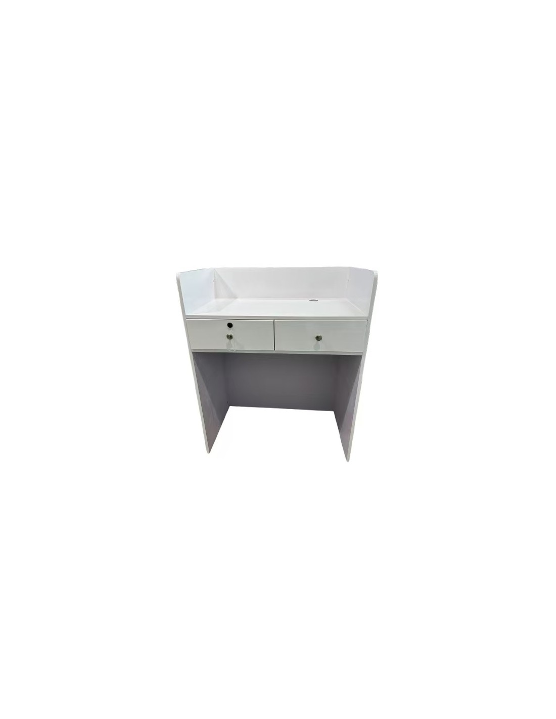 Diseño elegante en blanco con brillo. Dos cajones, un cajon con cerradura. un hueco prepardo para ordenador.