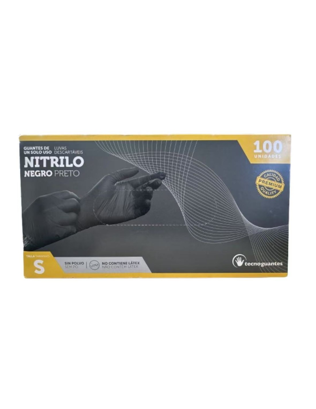 Guantes de un solo uso NITRILO. Talla S . Color: Negro. Sin polvo, no contiene latex..