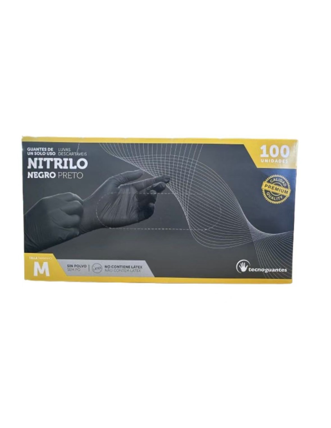 Guantes de un solo uso NITRILO. Talla M . Color: Negro. Sin polvo, no contiene latex..